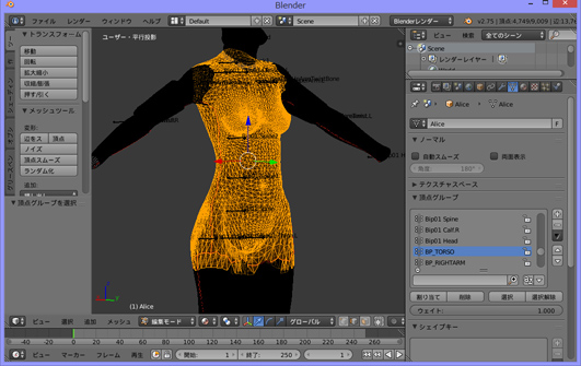 ここで使用したツール、素材はBlender 2.75a、Nif Inport Plugin ver 2.6.0、メッシュはDIMONIZED TYPE3 female bodyです。
