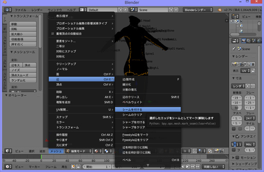 上記記事のあと、こどもていこくの素体を新プラグインとBlender2.75aの組み合わせで編集して、体側に光る線が出ましたので、対処方法とその後分かったことなどを書きます。