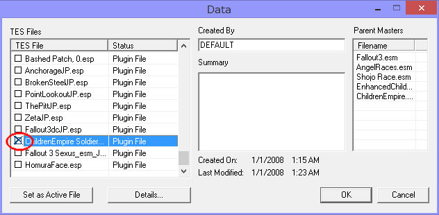 GECKでの確認はGECK起動後、File→Data...から開くesmをダブルクリックで指定